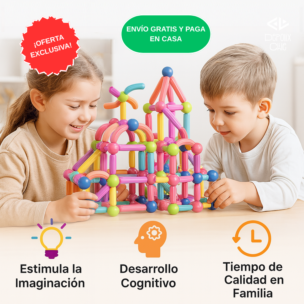 ✨ Estimula la Imaginación: Los colores vibrantes y piezas magnéticas permiten crear formas y estructuras únicas.
